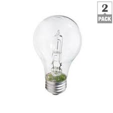 100 Watt Equivalent Halogen A19 Light Bulb (2-Pack) To be used in fixtures Philips EcoVantage 72-Watt A19 clear household light bulb is ideal for use in living rooms, offices, bedrooms, kitchens and hallways. The crisp, white light it produces enhances the look of your home. Philips EcoVantage bulbs use up to 28% less energy than standard incandescent light bulbs. Fully dimmable, this energy saving household light bulb contains no mercury and replaces your current 100-Watt incandescent. Use them in your existing fixtures just as you would standard incandescent. Estimated yearly energy cost: $8.67 (based on three hours/day, 11¢/kWh. cost depend on rates and use) Life: 1 year (based on three hours/day) Light appearance: 2900K (bright white) Lumens per Watt: 18.75 Ideal for use in table/floor lamps and open hanging pendants in your living room, office, bedroom, hallway or kitchen Provides a crisp, white light and adds a touch of sparkle to your hold decor