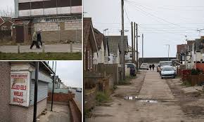 Dilapidated: The area has the greatest number of young people not in employment, education or training; one third of 16 to 24 year-olds claim Jobseeker's Allowance Strewn everywhere: Mattresses and other pieces of rubbish are discarded in front of dilapidated properties in the seaside town of East Jaywick, Essex Falling down: The down-at-heel suburb of Clacton in Essex pipped some of the most notoriously hard-up urban locations to top the deprivation league table Overgrown grass: East Jaywick is home to many retirees and jobs are scarce for younger residents in the rundown neighbourhood Lack of nightlife: Two youngsters walk near this dilapidated building called Mermaid Inn in the seaside town of East Jaywick, the most deprived place in England Puddles: Camper vans are parked near dilapidated properties in the seaside town of East Jaywick, Essex, which has become badly run-down No trading here: A dilapidated and boarded-up shop stands in the seaside town of East Jaywick, Essex, the most deprived place in England