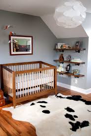 The first item I purchased was the cow rug and the rest of the room kind of evolved from there. Many items in the room were repurposed. For example, the dresser and chest were my mom's when she was a little girl, just repainted with new hardware. Likewise, the suitcases were already in the guest room. I had actually just moved them out of the way when we were positioning the crib and they ended up staying there.