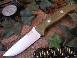 Here is a list of steels that I recommend: The way a knife blade is shaped determines its overall functionality. For example, a chef’s knife is shaped in such a way that it is perfect for slicing tomatoes or dicing garlic. That same knife however has no business out in the woods. The same holds true for the double-edged spear point and tanto-style knives. These knives are built for fighting and are perfect for thrusting and stabbing but do not hold out well in a survival situation. Instead you’ll want to choose a clip point or a drop point style blade. These blades are suited well for the tasks required in a survival situation. A clip-point blade’s tip is formed by a slight concave curve at the top. When slightly curved these tips are perfectly acceptable and strong. Clip points with exaggerated curves are susceptible to breakage if your pounding the spine while chopping wood. The drop point blade is the best all-around blade style. It is formed when the back or dull side of the knife slopes downward at a slight angle beginning at around the half-way point and meets the blade edge slightly above center.