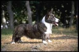 Do not allow the Corgi to developed Small Dog Syndrome. Height: Males 10 - 13 inches (25 – 33 cm) Females 10 - 13 inches (25 – 33 cm) Weight: Males 25 - 30 pounds (11 – 14 kg) Females 25 - 30 pounds (11 – 14 kg) Prone to PRA, glaucoma and back disorders. Do not overfeed for if they become fat it can cause back problems. Corgis will do fine in an apartment if they are sufficiently exercised. With enough exercise they can be calm indoors, but will be very active if they are lacking. Will do okay without a yard so long as they are taken for daily walks. Even more active that the Pembroke; Cardigans must have regular exercise, including a daily, long walk. The wiry, medium-length water-resistant coat is easy to groom. The coat is shed two times per year. The Cardigan Welsh Corgi is older than the Pembroke Welsh Corgi, with the Pembroke being bred out of the Cardigan. Both Corgi varieties may be a descendant of the Keeshond, Pomeranian, Schipperkes and the Swedish Vallhund.