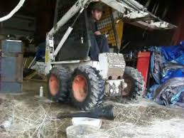 The Kellers built the loader to help a farmer mechanize the process of cleaning turkey manure from his barn. The light and compact machine, with its rear caster wheel, was able to turn around within its own length, while performing the same tasks as a conventional front-end loader. The Melroe brothers, of Melroe Manufacturing Company in Gwinner, N.D., purchased the rights to the Keller loader in 1958 and hired the Kellers to continue refining their invention. As a result of this partnership, the M-200 Melroe self-propelled loader was introduced at the end of 1958. It featured two independent front-drive wheels and a rear caster wheel, a 12.9-hp engine and a 750-lb. lift capacity. Two years later they replaced the caster wheel with a rear axle and introduced the M-400, the first four-wheel, true skid-steer loader.[2] The M-440 was powered by a 15.5-hp engine and had an 1100-lb. rated operating capacity. Skid-steer development continued into the mid-1960s with the M600 loader. Bobcat skid loader clearing snow with snowblower attachment