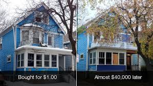 About 60 homes were razed in the last year, and 90 more are on the city's demolition list. As a result, only a handful of homes are still up for sale in the areas eligible for the $1 program, according to city's Division of Real Estate. "They're constantly losing value," said David Torke, a blogger and photographer who has helped several buyers get approved by the city. "If there is a small roof repair, by the time the second thaw cycle rolls around, there's a gaping hole and the floorboards start rotting." Mike Puma, who works for a company that preserves old buildings, is currently renovating a historic two-family home he bought for $1 last year. Like many of the houses Buffalo is selling for a dollar, the home had been stripped of its pipes and furnace and needed new interior walls. "It's pretty much guaranteed to be a full gut job," said Puma. Replacing all the crucial components in a home -- electricity, plumbing, roofing -- carries a hefty price tag. Puma's renovation has cost him $40,000 so far, and he estimates that it will probably total $55,000 before the work is done.