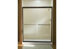, Modern Towel Bars, Round HeaderFinesse™ Frameless Sliding Shower Door - Height 70-1/16", Max. A third-party certified EPD for this product gives details about its environmental performance for LEED credit. To learn more about EPDs, click here. We are proud to include this product with numerous Sterling bath and kitchen products that have received industry design awards for our innovative, smart designs. To learn more about our awards, click here. A special glass treatment that keeps your shower glass looking new. Deep Bronze with Frosted Glass Pattern Deep Bronze with Smooth Clear Glass Texture Deep Bronze with Oak Park Glass Pattern Deep Bronze with Lake Mist Glass Pattern Deep Bronze with Grafite Glass Pattern Deep Bronze with Cirkette Glass Pattern Deep Bronze with Boxwood Glass Pattern Deep Bronze with Starscape Glass Pattern Nickel with Frosted Glass Pattern Nickel with Smooth/Clear Glass Texture Nickel with Oak Park Glass Pattern