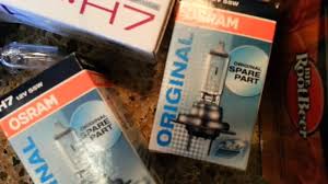 There are 2 bulbs, the top large bulb is the low beam. To remove it, first remove the socket attached to it, then press the top of the metal spring clip towards the front of the car and towards the passenger side (look closely at the clip to see the latch holding it. The clip then swings back towards the engine. Remove the old bulb, install the new bulb, replace the spring clip, re-connect the socket. (Don't touch the bulb, if you do clean it off with a lint free cloth and alcohol). To replace the lower bulb (parking light), remove the socket, then release the lower end of the spring clip, look closely and you'll see the latch holding it. You have to press it towards the front of the car and swing it towards the passenger side. It will swing up and release the bulb. Replace with new bulb, replace spring clip, connect socket. Don't forget to replace the plastic cover panel by inserting the bottom tabs into the sockets and snapping it closed at the top by pressing it towards the front of the car.