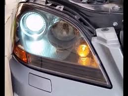 How to Change Headlights on C230 Mercedes-Benz The headlights on your C230 Mercedes Benz are high-intensity discharge headlights. These high-intensity discharge, or HID headlights, use xenon gas inside the headlight bulb to light up the road in front of you. The C230 uses 8000K to 10000K HID headlights, depending on the driver's preference. These headlights are much thinner than their halogen headlight counterparts but offer 2,000 to 3,000 hours of service life. Replacement HID lights for your Mercedes can be purchased from most auto-parts stores. Open the hood and pull down on the plastic tab on the backside of the headlight housing. Pull the housing cover off of the back of the headlight. Unplug the electrical power connector from the back of the headlight. Squeeze the tabs on the retaining clip together on the back of the headlight with needle-nosed pliers and pull the clip off the back of the headlight. Pull the headlight out of the back of the headlight housing.