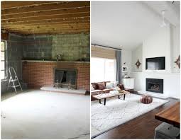 These photos were taken after the structural ridge beam was installed. The fireplace wall is a block wall. A support was installed for the beam to rest on the block wall. At the other end of the beam is an interior wall – no block wall. To support the beam properly, the slab on either side of the doorway shown above was jackhammered and dug out. Footers were poured and the corner studs were replaced with glued and nailed 2 x 4 posts. The header above the doorway was beefed up as well to support the structural ridge beam. On a side note, the boys look so little! With the ridge beam installed, we were finally able to envision how the space might look someday. It felt so much bigger yet we hadn’t touched the house’s original footprint. How much did all of this cost? To have the LVL beam manufactured and installed, we shelled out $5,600. That was with us demo’ing the walls, the drop ceiling and most of the rafters. That price does not include insulation or drywall around the beam or affected walls.