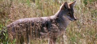 Description and Life History Coyotes can be difficult to distinguish from a medium sized German shepherd dog from a distance. There is wide variation in the coyote's color, but generally their upper body is yellowish gray, and the fur covering the throat and belly is white to cream color. The coyote's ears are pointed and stand erect, unlike the ears of domestic dogs that often droop. When observed running, coyotes carry their bushy, black tipped tail below the level of their back. Wolves, which are found in Michigan's Upper Peninsula, are larger than coyotes and carry their tail in a horizontal position while running. The size and weight of coyotes are commonly overestimated, because their long fur masks a bone structure that is slighter than that of most domestic dogs. Coyotes can often live six to eight years in the wild. Various forms of natural mortality include disease, predation, and starvation. However, hunting, trapping, and vehicle collisions are common causes of coyote mortality.