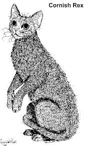 Many of the other spontaneously occurring rex mutations have occurred and some have proven to be the same gene as the main four breeds. Some of those mutations, such as the Dutch Rex, were found to have unmanageable or unattractive fur and were not pursued as breeds. The name Rex was taken from the Rabbit Fancy because the first rex cat breed to be developed, the Cornish Rex, has a coat similar to that of a rex rabbit, in that it comprises only the undercoat with no topcoat or guard hairs.If you happen to be looking for a friendly, affectionate, intelligent, good-tempered and relatively maintenance free cat for a pet, you can't do much better than a Devon Rex. (Trust writer Rick Zimmerman to know, having given house and home to three of these purebred cats over the last decade and a half.) Pictured above is Miracle, a tortoise-shell gray Devon Rex male of about 4 years of age, who exhibits most, if not all, of the classic 'pixie'-like physical characteristics of the Devon Rex breed: a distinctly triangular head with an almost bat-like appearance, large ears, large eyes, relatively short snout, broken-off whiskers and a crinkle-curl (or 'marcelled') coat.