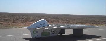 To put this in context, compare it with the gravitational acceleration: a is about 1% of g. (A solar car has limited power – about one kilowatt. So drag is very important and that's why sunswift IV has this shape.)From Newton's second law, we write F = ma. Including a driver (and ballast, to make the effective driver's mass 80 kg), sunswift's total mass is 244 kg. Substitution gives a force of − 23 N. As we mentioned above, the drag force is not independent of speed, so neither is the acceleration. Nevertheless, we can say that this is greater than the force at 50 k.p.h. and less than that at 70 k.p.h. For now, let's guess that this is roughly the stopping force at 60 k.p.h. If she were travelling at a constant speed of roughly 60 k.p.h. in a straight line, the acceleration would be zero and so would the total horizontal force. So the drive wheel would have to apply a force of magnitude 23 N to the ground. (Only the single back wheel drives, and the motor is in the wheel to minimise losses in the drive train.)