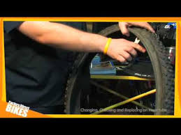 Move around the rim about an eighth of the circumference and repeat the process again, leaving the first tool in place. Now zip the second lever around the wheel and the tire should come right off on one side. Remove the tube completely. Fill the punctured tube with a few pumps of air and inspect the punctured tube for leaking air to find a hole and determine where the problem may have occurred. Best way to find an air leak is by inserting the tube with air in water. Where air bubbles come out , there is a hole in your tube. Thoroughly inspect the inside wall of the tire by rubbing along the entire surface area and inspect the rim for glass, nails, thorns, or any object that may have punctured the tube. Use caution when feeling inside the tire as a nail, or glass can cut you. Be sure to remove any thorns, glass, or nails with pliers if you find them. Adjust rim tape to cover protruding spoke. Either patch or replace the inner tube; or replace your tube and tire. Unwrap your new tube and remove the plastic dust cap and the lock ring.