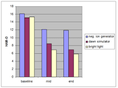 Light therapy treatment of seasonal affective disorder (SAD) usually involves regulated exposure to a white light source, commonly 10,000 lux at the eye for 30 minutes per day (Partonen and L�nnqvist, 1998). Any white light source will be effective at these levels (Lam and Levitt, 1999), so full-spectrum light source is in no way special for treatment of SAD. Full-spectrum light sources have no demonstrable benefit for dental health. These claims have no scientific merit (McColl and Veitch, 2001). The section, "Is ultraviolet radiation production important?" gives more detail. Full-spectrum light sources and psychological benefits. Full-spectrum light sources may have psychological benefits, particularly in societies that place value on "natural" environments. One of the claims often associated with full-spectrum light sources is that they are most like natural daylight. Unlike full-spectrum electric light sources, however, daylight does not have a fixed spectrum. Rather, natural light varies with latitude, time of day, season, cloud cover, air pollution, ground reflectance, and, if a person is indoors, window tinting.