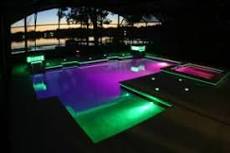 The results are amazing; crisp color, a bright yet dense saturation, and special effect capabilities. LED pool lights are much preferable to traditional incandescent bulbs, as a typical incandescent bulb lasts only about 5,000 hours whereas an LED light will last 30,000+ hours. LEDs create light without reaching the high heat extremes that traditional light bulbs do. With less heat, they require less energy to operate, and less energy is wasted. LED pool lights are brighter while using up to 79% less energy than traditional incandescent lighting. LED circuits also approach 80% efficiency, which means that 80% of the electrical energy is converted into light energy while the remaining 20% is lost as heat energy. Comparatively, incandescent bulbs operate at 20% efficiency, meaning that 80% of the energy is lost as heat. Even though incandescent light might seem cheaper initially, using LED pool lights increases use benefit, while reducing energy costs. In addition to the economic bonus of saving so much energy, LED pool lights have a color changing capability that provides a personalized light show in your backyard.