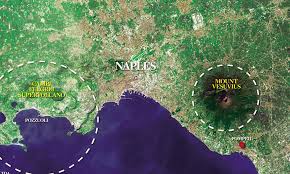 Vesuvius's big daddy: The supervolcano that threatens all life in Europe Two thousand years ago Mount Vesuvius destroyed Pompeii. Today, a larger, far more deadly supervolcano lurks on the other side of Naples. If it erupts, Campi Flegrei could wipe out all life in Europe. So why are British scientists battling the Italians for the right to poke at it with drilling rods? The Campi Flegrei caldera is a supervolcano. While a new eruption here would be more likely to result in the creation of another Vesuvius-like cone, the worst-case scenario could see it obliterating much of life in Europe NAPLES, ITALY, THE NEAR FUTURE The view across the Gulf of Pozzuoli - much of the Camp Flegrei supervolcano lies beneath the sea here Geophysicist Renato Somma at an abandoned building destroyed by sulphurous deposits from the caldera Pisciarelli, near Pozzuoli – the centre of the caldera The area where scientists want to drill towards the magma Rocks from the caldera