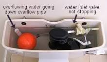 everything out of the bowl. When all the water is gone from the toilet bowl and air is drawn into the trap, the siphoning stops. Meanwhile, the tank ball falls back into place, closing the flush valve opening. As the water level rises in the tank, the float ball rises until the float arm is high enough to lower the valve plunger in the ballcock assembly and shut off the incoming water. If the water fails to shut off there is an overflow tube that carries excess water down into the bowl to prevent the tank from overflowing. If water flows continuously out of the tank to the bowl and down the drain: Step 1: Lift up on the float arm. If the water stops, you know the problem is that the float ball doesn’t rise far enough to lower the valve plunger in the ballcock assembly. One reason could be that the float ball is rubbing against the side of the tank. If this is the case, bend the float arm slightly to move the ball away from the tank side.