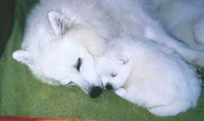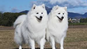 They are a very out going dog and make excellent companions. They are suitable for apartment living and make good pets for children. regular brushing is needed and will require extra care when molting. This is an annual occurrence with dogs and bi-annual with bitches. Little bathing is required as they have a self-cleaning, sweet smellingTo freshen the coat a sprinkle of talcum powder when brushing is all that is required. generally they exercise themselves but do love to have regular walks and playtime, which will help to keep them fit and happy. Ask breeders about patella problems. At this stage they are free from the majority of hereditary diseases. For Diet and other general dog health information Health/Nutrition The longhaired coat of the Japanese Spitz has a thick under-layer that is always pure white. The tail is covered with long hair and is carried curled over the back. The coat is short on the bottom half of the legs, with breeches on the hind legs and feathering on the forelegs.