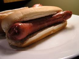 Casings were slippery and broke easily, stuffing was time consuming and messy, and the end product looked dull and gray and far from appetizing. I had started the last part of the project at 9 p.m., and didn't get to bed until well after midnight. By that time I never wanted to see another sausage again. What was the problem? First of all, I figured out why people don't recommend the Kitchen Aid sausage stuffer attachment. Though it was cheap (about 10 bucks), it is awful at stuffing sausage, especially when the meat is a paste. The meat sticks to everything and won't go down the hole. It took me nearly an hour and a half to stuff 10 hot dogs. Never has anyone in humanity slaved over a hot dog more than I did. I will never do this again until I get a nice, shiny sausage stuffer that can do the work. That is a promise. It is also a little discouraging to have to wait three days to have a hot dog, but that's just the way Michael Ruhlman and his book Charcuterie likes to do it.