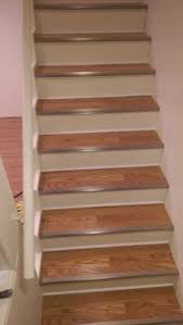 My dilemma has to do with transitioning the following: the laminate flooring at the top floor with the first step down (4 step to the landing); andthe laminate flooring I laid on the landing with the first step down (9 steps to the main floor).I would use the Cap-A-Tread for these two edges (to match the other steps), but I would have to "butt" the lip against the laminate flooring (and also rip cut the tread). Pergo has a bullnose piece that I can use for the two edges, but the bullnose edge is only 3/4 of an inch wide (vs. the Cap-A-Tread's 1.75 inch width). The difference in spacing (thanks to the landing and the top floor step) looks "odd." Maybe I'm being picky, but do you have any other ideas for how I might address this? So sorry for the delay on your question... I recently had a similar situation in my own home while installing laminate flooring. I used a simple oak reducer strip that I stained to the color that best matched. I attached it to the edge with the low taper at the step.