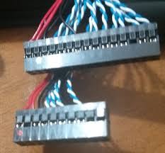 CCFL stands for Cold Cathode Fluorescent Lamp indicating that the screen backlight does not use a Light-Emitting Diode (LED), but instead a (single, in this case) bulb which requires an inverter to output over 1.1-1.4 kV for the lamp's ignition. However, just ordering a 30 pin cable and assuming that it works turned out to be the wrong thing to do: the controller came with a 30-to-20 pin cable which worked fine, but the additional 30-to-30 pin ones I ordered (before receiving the controller) did not work at all. I set out to fix the cables I bought, and in the process I learned a decent bit about how they work, so I wrote-up this post to help anyone that may run into similar issues in the future. It turns out that these screens use a standard called Low-Voltage Differential Signaling (LVDS) that conveys information through the polarity of the voltage differential ΔV (a few hundred mV) between 2 wires. The two wires must have the same length and are twisted together to reduce susceptibility to Electromagnetic Interference (EMI).