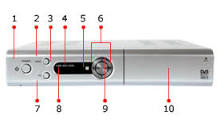 Power: Switches the Set-top Box (STB) in "standby mode" or in Menu: Launches or terminates the menu application. Standby / Power on indication light: Turns red while in "standby mode" and turns off while in the "power on mode" Message indication light: Turns orange when STB receives a message. Remote Sensor: Receives the infrared signal from Remote Control Unit. Arrow Keys: Navigates interface Left/Right and changes cursor position. OK: Activates a highlighted item or goes to next level on hypertext menu or to confirm the user's action. Infra Red Activity Indication Light: Turns green while in the "power on mode" Flashes green when receiving data from Remote Control Unit. Arrow Keys: Navigates interface Up/Down & changes cursor position. Smart Card Slot: Open flap and insert a Smart Card fully into the slot. Antenna In: Input from Terrestrial Antenna. Network of Active Antenna. Loop out & RF out:Terrestrial signal loop out & RF re-modulation