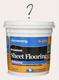 The outer edge of the paper is where the vinyl should be cut. Using a straightedge and a protective piece of scrap wood to lie underneath the vinyl, and carefully cut the vinyl along the template edge. Repeat steps 6 through 8 along each wall in the room. The vinyl should be in its final position and trimmed exactly to each wall. Note: Perimeter adhesion allows the flooring in the unadhered areas to float over the top of any imperfections. If the floor had any roughness in it, it would mask it very nicely. It is best to talk to the retailer about the type of adhering because there are a lot of different floorings available. Some use perimeter adhesion, some full adhesion and some can be adhered either way. Purchase the right vinyl adhesive at the same time the flooring is purchased. Also, the directions on the adhesive container explain the right trowel, etc. to use. For perimeter adhesion: Open the can of adhesive material and, using a fine-notched trowel, spread a band along the wall about 6 inches wide.
