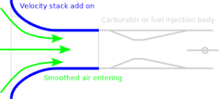 Suitable for A1 licence Suitable for A2 licence BMW Motorrad Approved Used Bikes HONDA CBF1000 Bikes for Sale << First 1 2 3 4 Last >> A velocity stack, or air horn,[1] is a trumpet-shaped device of differing lengths which is fitted to the air entry of an engine's intake system, carburetor or fuel injection. It is designed to: Modern engines universally have tuned intake tract volumes and associated resonance frequencies, designed to provide higher than atmospheric intake air pressure while the intake valves are open - increasing the density of the trapped air in the combustion chamber (higher compression).[] Modified engines often have the original air box and associated ducting removed and velocity stacks are installed as accessories. Modern fuel injection systems with a plenum and single air inlet typically incorporate some sort of radiused entrance, designed to improve power, based on air flow increases. Power gains are usually at higher rpm.