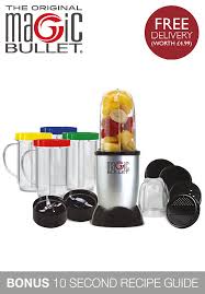 IN CONCLUSION, GET ONE & GET FULL BECAUSE IT WORKS. Yes () No () Report Yes () No () It pulverized everything I tried so far. I find the blade top difficult to open for someone with small hands. If you pass the Max line it will leak out. Yes () No () Report Yes () No () Verified purchaser Great blender for making smoothies. I make healthy smoothies and my son has his frozen fruit smoothies. We love this product. Yes () No (6) Report Yes () No (6) Verified purchaser Verified purchaser I use it everyday! Its one of the best money spent....no regrets! Yes () No (9) Report Yes () No (9) Verified purchaser Verified purchaser There isn't anything that Nutri Bullet can't make 500% Better! Yes () No (8) Report Yes () No (8) Verified purchaser I accept the Terms and Conditions 17 Piece Magic Bullet Blender, Mixer & Food Processor Protect your purchase with a 3 year Total Warranty for just £6.99? The Magic Bullet Blender, Mixer & Food Processor is the must have multi purpose kitchen appliance that does any job in just 10 seconds or less with no mess and no fuss!
