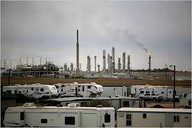 The camper sits in a mobile home park without working utility connections, like electricity, for now, but Ms. Allen said she was relieved. “At least we have our own place,” she said.In desperation a few months ago, the city began allowing trailers, campers and skid shacks (nearly windowless portable homes) to park in one of the empty, overgrown trailer parks that had been abandoned after the last oil boom ended in the 1980s. The more than 180 companies involved in the oil operations, including Hess, ConocoPhillips and Marathon Oil, are also concerned about housing. Some have rented out entire motels, and others are bringing in large, portable housing units — known as man camps — for workers to live on site, as Mr. Scott, the man sleeping in his truck, ultimately did.Halliburton, with more than 300 employees in the area, has a 90-unit camp in place, and has asked to cart in a 158-bedroom camp used for the Winter Olympics. Some companies are helping workers make down payments on mobile homes.