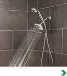 The shower head comprises of the rain shower and full spray patterns for utility. It also includes the showerarm and flange to make it a complete set. The 90 Degree Moentrol Shower Head is easy to install as a wall mount fixture. The 90 Degree Moentrol Shower Head has an ADA compliant design that allows for simple operation and easy access. It requires some installation that can be done with the help of simple tools. This shower faucet can be wiped using a soft, dry cloth to ensure that it looks as good as new for years to come. Equipped with the Moentrol® pressure–balancing control valve: control allows you to adjust both water volume and temperature; pressure–balancing feature helps maintain temperature even when other water sources in the house are in use 6" diameter spray head rainshower for exceptional water coverage Shower Head Type: Fixed Shower HeadMade in the USA Overall Product Weight: 0.01 lbs from Grosse Pinte Shores, MI from New Milford, CT