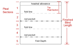 As a general rule use an absolute minimum headrail allowance of: Traditional batten: Batten face + 3.5cm Headrail mechanisim: Headrail depth + 2.5cm Please see our BLOG entry HEADRAIL ALLOWANCE EXPLAINED for more detail Deduct the headrail allowance from the finished blind length to give the amount of fabric to be folded. Decide on the approximate depth you would like the folds to be when the blind is pulled up*. Folds are usually 10cm to 25cm. Divide the length of fabric to be folded by an odd number until you get an answer closest to your ideal depth of the folds. The odd number that was closest is now your number of pleat sections and the answer in (3.) is now the depth of your folds. The number of rod pockets = (number of pleat sections -1) divided by 2 *Note the depth of the blind when pulled up will be equal to the headrail allowance plus the depth of the fold (one pleat section). Alternatively try our online calculator. Your Question or Comment