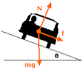 Friction and Automobile Tires The friction between the tires of your automobile and the road determine your maximum acceleration, and more importantly your minimum stopping distance. So the nature of that friction could actually be a matter of life and death. But like all applications of friction, it has frustrating ambiguities. Many years of research and practice have led to tread designs for automobile tires which offer good traction in a wide variety of conditions. The tread designs channel water away from the bearing surfaces on wet roads to combat the tendency to hydroplane - a condition which allows your car to "ski' on the road surface because you have a layer of water lubricant under all parts of your tire. Jones and Childers report coefficients of friction of about 0.7 for dry roads and 0.4 for wet roads. The tread design represents an "all weather" compromise. If you were an Indianapolis race driver, you would use "slick" racing tires with no tread. On dry surfaces you might get as high as 0.9 as a coefficient of friction, but driving them on wet roads would be dangerous since the wet road coefficient might be as low as 0.1 .
