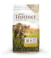 Each formula combines high protein kibble plus freeze dried raw together in the same bag. It’s the perfect combination of nutrition and convenience! Nature’s Variety Instinct Raw Boost Chicken Meal Formula for cats is formulated to meet the nutritional levels established by the AAFCO Cat Food Nutrient Profile for all life stages. Chicken Meal, Chicken Fat (preserved with Mixed Tocopherols and Citric Acid), Tapioca, Chicken, Menhaden Fish Meal, Tomato Pomace, Suncured Alfalfa Meal, Freeze Dried Turkey, Natural Flavor, Freeze Dried Chicken (including Freeze Dried Ground Chicken Bone), Freeze Dried Turkey Liver, Pumpkinseeds, Potassium Chloride, Montmorillonite Clay, Choline Chloride, DL-Methionine, Carrots, Apples, Cranberries, Salt, Vitamins (Vitamin A Supplement, Vitamin D3 Supplement, Vitamin E Supplement, Niacin Supplement, L-Ascorbyl-2-Polyphosphate, d-Calcium Pantothenate, Thiamine Mononitrate, Pyridoxine Hydrochloride, Riboflavin Supplement, Folic Acid, Biotin, Vitamin B12 Supplement), Taurine, Butternut Squash, Minerals (Zinc Proteinate, Iron Proteinate, Copper Proteinate, Manganese Proteinate, Ethylenediamine Dihydriodide, Sodium Selenite), Ground Flaxseed, Dried Kelp, Broccoli, Dried Bacillus coagulans Fermentation Product, Rosemary Extract, Apple Cider Vinegar, Salmon Oil, Dried Chicory Root, Blueberries