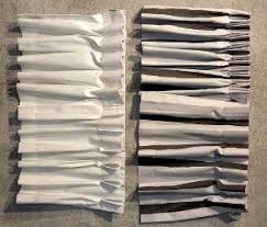 Metal rings are punched into the heading using a special device, usually about six to eight eyelets per drop, making it normally a more expensive option. This type of curtain doesn’t need as much fullness of fabric so it stacks back to a minimal space. The rod needs to be fitted well above the architrave. Suitable for light to medium weight fabrics. When estimating for fabric allow twice the rod width. Goblet pleats make a very elegant heading for longer lengths. Pleats fall from each goblet that can be stuffed with tissue paper or cotton wool to retain their shape. This heading tape has 2 sets of cords and is suitable for medium to heavy weight fabrics. Multiply the track width by 2-2.5 when estimating for fabric. Suitable for tracks or poles. Triple pinch pleat (aka French pleat). This style is simple, yet extremely elegant. Suitable for medium weight fabric so the pleats are not too thick or bulky when made up. Best described as knife pleats pinched in groups of 3 pleats (or sometimes just two, or even single) with spaces between that spread when the curtain is extended.