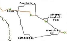 The most convenient campground for your overnight stay in this city is the Gas City Campground, operated by the City of Medicine Hat. Serious 'dinophiles' can enhance their trip by heading south on Highway 56, then east on Highway 1, and slightly north on Highway 36 to Dinosaur Provincial Park (a UNESCO World Heritage Site). Its focus is the Field Station, a base for scientific research, but is also home to numerous dinosaur bone-beds, rivaled only by sites in China's Gobi Desert. full detailsMost people come here for guided walks and the popular Badlands bus tours, which take in parts of the park otherwise out of bounds to visitors. Not only is the diversity of specimens great, but so is the sheer volume; more than 300 museum-quality specimens have been removed from bone-beds found here, and are exhibited in museums around the world.Dinosaur Provincial Park campground, open year round, is close by and this would be an ideal place to spend the night. Continue your southwesterly journey, turning onto Hightway 887 at Seven Persons and stop at Red Rock Coulee.Take Hwy 501 to the turn-off to Writing-on-Stone Provincial Park, then continue on to Devil's Coulee Dinosaur Heritage Museum in Warner, before arriving in the city of Lethbridge.