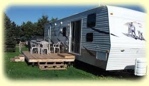 Prince Edward Island Camper Rentals Camping is a family oriented activity where you can get away from work, kids can be kids, and memories are made. Consider us while visiting Prince Edward Island for a family reunion, if your child is attending a PEI hockey school or whether it's your first vacation to the Island.We will rent you a camper, deliver it, set it up, and remove it when your stay is complete. We deliver to any Island campground or private property. Renter is responsible to make their own campground reservations and pay their own campsite fees. Use the contact us link above or click here for more information on your PEI Camper rental.We have 4 campsites available with fully equipped trailers already in place. You only need to bring personal items such as bedding, towels, dish cloth, dish towels, and food. A gas BBQ is provided. 4 day minimum required. Trailer rental rates can be found on the Rates page. Trailer check-in is 3 PM and check-out is 11 AM.