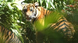 And finally, the biggest kitty on the island: the Sumatran tiger, Panthera tigris sumatrae! It’s a subspecies of tiger that only lives on Sumatra. It’s listed as “critically endangered”. The World Wildlife Fund estimates there are fewer than 500 of these tigers left in the wild—maybe a lot fewer. This beauty was photographed in the Berlin Zoo by ‘Captain Herbert’: Sumatran tigers have webbing between their toes, which makes them really good swimmers! They get up to 2.5 meters long, but they’re is the smallest of tigers, as you might expect from a species on a hot tropical island. (The biggest is the Siberian tiger, which I talked about earlier.) There are lots of palm oil plantations in Sumatra. People burn down the jungle to plant palms, and the smoke sometimes creates a thick smelly haze even here in Singapore. This deforestation is the main threat to the Sumatran Tiger. Also, many tigers are killed every year by poachers. On the bright side, in 2006 the Indonesia Forestry Service, the Natural Resources and Conservational Agency, and the Sumatran Tiger Conservation Program sat down with companies including Asia Pulp & Paper and set up the Senepis Buluhala Tiger Sanctuary, which is 106,000 hectares in size.