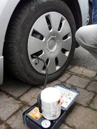 Find parts for your car Go to My VehiclesSome modern cars come with puncture repair kits instead of spare wheels. There are three main reasons for this: Save space (meaning a bigger boot) Save weight (improves fuel consumption) Here’s a quick overview of how car tyre puncture repair kits work. (The kit pictured is from a 2008 Ford Focus): Plug bottle of latex gloop into hole in machine Connect air hose to wheel Plug compressor into cigarette lighter/12V socket in car Sit back and wait while it seals and inflates the tyre Five or ten minutes after you start, you can drive away… These kits really do work and they are certainly easier than changing a wheel. However, they do have a number of disadvantages over a full-size spare wheel and are not even as good as a space-saver spare wheel, in my opinion. It’s much quicker, cleaner and easier than changing a wheel – anyone can do this, no physical strength, tools or skills are required.
