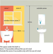 In this article, Chief Engineer Geoff Cronshaw looks at some of the key requirements and frequently asked questions. The particular requirements of this section apply to the electrical installations in locations containing a fixed bath (bath tub, birthing pool) or shower, and to the surrounding zones as described in the Wiring Regulations. The Wiring Regulations do not apply to emergency facilities, for example emergency showers used in industrial areas or laboratories.The 17th Edition, published in 2008, introduced a number of amendments. These included changes to the zonal system, RCD protection on all bathroom circuits, and 230 V socket outlets permitted 3 m horizontally from the boundary of zone 1; supplementary equipotential bonding may be omitted subject to the Wiring Regulations being met.Horizontal or inclined ceilings, walls with or without windows, doors, floors and fixed partitions may be taken into account where these effectively limit the extent of locations containing a bath or shower as well as their zones.