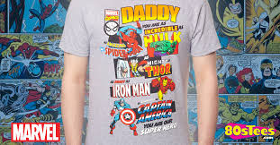 Suicide Squad Shirts (4) Wonder Twins Shirts (2) X Men Shirts (13) Superhero Costume Shirts (20) Save the day with these superhero t-shirts Like a lot of 80s kids, we were first exposed to superheroes not through the comic books, but from classic shows like Super Friends, the live action Incredible Hulk show, and Spider-Man and His Amazing Friends. Heck, we still can't think of Robin without being reminded of Casey Kasem! So check out our collection of superhero t-shirts, including iconic classics like the logo Superman shirt and the black Batman shirt (which every true fan needs!) as well as other favorites like The Avengers, Wonder Woman, X-Men, and more! Marvel Comics Father's Day T-Shirt Captain America Shield T-Shirt Spider-Man and Venom Shirt DC Comics Flash Shirt Batman Hush Logo on Black Hyper Real Deadpool T-Shirt Sheldon's Batman and Robin Shirt Marvel Comics Venom T-Shirt Batman The Animated Series T-Shirt