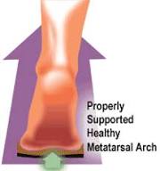 Always consult your physician for questions pertaining to your specific diagnosis and treatment protocol. Product Specialists will be happy to speak to you about any recommendations your doctor may have provided, or information regarding recommendations based on biomechanical principles. The forefoot absorbs as much as 110 tons of cumulative force per mile during running, which makes your metatarsals, the five long bones that run from your arch to your toes, one impressive set of shock absorbers. When you push off the ground, your body weight is transferred to your metatarsals. If the weight distribution across the foot is uneven when it hits the road (because of your foot's mechanics, a tight Achilles tendon, or calluses), the metatarsals can become irritated and inflamed, resulting in metatarsalgia, according to John Cianca, M.D., associate professor of physical medicine and rehabilitation at Baylor College of Medicine in Houston.If you develop metatarsalgia, you'll feel a burning, stabbing, or aching pain at the "head" of the bone, just beneath the toes.