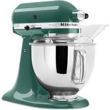 Tilt-back mixer head design provides easy access to the bowl and beaters Includes a pouring shield for your convenience Bay leaf color complements your kitchen decor This question is from Artisan Series 5 Qt. Stand Mixer in White on White2 Does it come with more than 1 mixing bowl? This question is from Artisan Series 5 Qt. Stand Mixer in Tangerine1 can I buy a pouring shield for my old mixer This question is from Artisan Series 5 Qt. Stand Mixer in Tangerine1 what is the name of the cover on the mixing bowl This question is from Artisan Series 5 Qt. Stand Mixer in Contour Silver1 Which mixing hooks does this mixer include? It also includes the pouring shield correct? KitchenAid Artisan Artisan Series 5-Quart 10-Speed Bay Leaf Countertop Stand Mixer Item # 374012 Model # KSM150PSBL 5-quart stainless steel bowl with handle Power hub for additional optional attachments 67-point planetary mixing action Bread yield: 4.5 loaves
