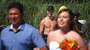 Shirtless Justin Trudeau accidentally photo bombs B.C. beach wedding Prime Minister stands to the side as bride walks down the aisle By Lien Yeung, CBC News Posted: Aug 06, 2016 5:03 PM PT Last Updated: Aug 06, 2016 5:25 PM PT Prime Minister Justin Trudeau smiled as he watched a bride walk down the aisle during her wedding in Tofino, B.C. (Marnie Recker Photography) A wedding that took place on a public beach in Tofino, B.C., earlier this week had a very high-profile and unexpected guest — Prime Minister Justin Trudeau. Wedding photographer Marnie Recker snapped a photo of the prime minister standing in the background just as the bride was making her way down the aisle. She says Trudeau was departing the beach when he realized he had stumbled into the path of a wedding procession, as the bride was walking down the aisle. "It was her moment and he respectfully stood aside and witnessed her walk down the aisle to her husband-to-be," wrote Recker on her Facebook page.