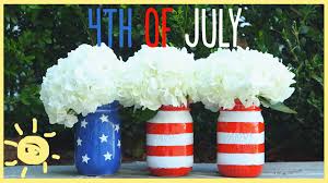 Published on June 26, 2015 These fun DIY’s will add the perfect touch to your 4th of July celebrations or any summer party!! Subscribe to WUM for new vids every M-W-Th-F http://bit.ly/sub2moms DOWNLOAD INSTRUCTIONS HERE: 4th of July Decor American Flag Mason Jars • 3 empty mason jars • White spray paint • Blue spray paint • Red spray paint 1. Spray jars with spray paint (or a white base). 2. Cover one jar with star stickers, which can be any size. 3. Cover other two jars with washi tape, creating stripes. 4. Spray jars with stars with blue spray paint. 5. Spray jars with washi tape with red spray paint. 6. Once dry, peel off the stickers. 7. Can add flowers or silverware. • Craft paper (or wrapping paper) (48’x9’) 1. Take paper and fold it accordion style. 2. Go over creases to make sure folds are strong. 3. Tie off bottom with ribbon. • Toilet paper roll 1. Glue scrapbook paper to toilet paper roll.