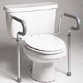 Use bedside, or remove backrest for use as a toilet safety frame or raised toilet seat. Features large snap-on seat with lid for added comfort and support. Features legs that angle outward to resist tipping. Blow molded plastic seat and back with drainage holes and built-in handles. Equipped with slip-resistant rubber tips, this chair is ideal for narrow tubs and showers. The adjustable legs provide additional height preferences and stability. This product is lightweight and durable. Can be mounted vertically, horizontally or diagonally in the tub or by the commode. Soft-Touch grip style with white vinyl coating. Sturdy, durable all-steel construction. Easy to adjust locking mechanism that is lightweight, portable and waterproof. No tools or assembly requires, which makes installation easy.Welcome to Orlando's source for handicap rental equipment! We have Cruise line approved medical equipment rental, Disney handicapped equipment rental and Orlando attractions wheelchair, electric scooter and oxygen equipment rentals.