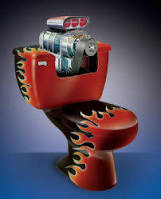 But what do they have to offer? It seems that regardless of the technology in question, the first thing that Americans want to know about is horsepower, which is particularly crucial given the 1.6-gallons-per-flush limit imposed by U.S. regulators several years ago. After an initially dismal start, toilet-makers began to utilize computer models and sophisticated math to get the most out of those 1.6 gallons, and consequently many modern toilets can outperform their earlier incarnations. The most bang for the flush is delivered by American Standard’s Champion toilet, which can swallow twenty-four golf balls with a single 1.6 gallon flush. But unfortunately it lacks in other niceties… It’s just a souped-up classic. For people who don’t eat quite so many golf balls in one sitting, there are a few alternatives which harness power beyond simple gravity. The FlushMate and PF/2 systems use water line pressure to push waste down the drain, and the Vacuity system uses siphon action to create vacuum pressure to pull the contents out of the bowl.