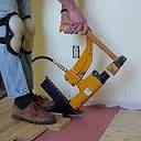 This method is not used with plank floors or solid strip floors because those types must be stapled or nailed. You can also use the nail down method when you are tackling a do-it-yourself hardwood flooring installation. You will generally use this method with three quarter inch solid products, but you can use adapters for thinner sizes of flooring. As a rule, two inch nailing cleats are shot from a nailer, and this attaches the hardwood to the subfloor. Stapling is another common method for DIY and professional hardwood flooring installations. With this method you'll be using 1.5 to 2 inch staples to apply the flooring onto the sub-floor. They are nailed by the use of a pneumatic gun. Pneumatic guns are air powered tools that need an air compressor and a long hose. Check with the hardwood flooring manufacturer for the right size staples to use with their product. Using the wrong size staple or nail can damage the planks or insecurly attach the planks to the subfloor making your installation loose.