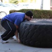 In recent years, the popularity of using strongman training (especially large tires), has exploded with many coaches and athletes incorporating the various exercises into their programming. When performing the various tire movements correctly, they can enhance the strength, power development, and conditioning of anyone willing to challenge themselves like their Strong Man idols. The one nice advantage about using tires to train is that you only need to be concerned about storage space because they are an inexpensive piece of equipment to obtain. I have three tires at my gym and none of them cost me more than some beer money. To find a tire, do a local search for shops that deal with commercial vehicles. For one of my tires I had to leave my contact information and they called me when they had one in. Usually, tire shops are more than willing to part with these large tires because it costs money to recycle them; it’s a win-win situation for you and them. Once you have your tire, it’s time to start using it, and there are a variety of exercises that will challenge you in ways traditional weight training can’t.