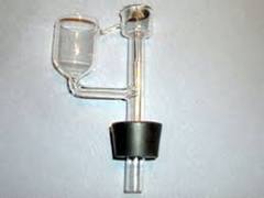 A glass cuvette is flipped upside down and placed over the glass nozzle. When the vacuum pump is turned on the cuvette is treated to a nice, refreshing clean and rinse cycle.