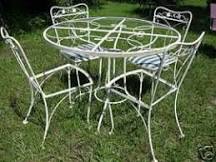 Durable and classic, vintage iron furniture is built to last. Wrought Iron Dining SetWrought Iron Dining SetLong prized for its sturdiness and craftsmanship, wrought-iron outdoor furniture is bent and hammered into shape by hand — unlike mold-made cast-iron items, whose parts are bolted together (and whose seams are sometimes visible). Blacksmiths in America popularized wrought iron during the 1920s, and it remained in vogue until the Eisenhower era, when lighter, cheaper, rust-proof aluminum caught on.Pictured: This early-20th-century Salterini dining set has substantial curved feet that don't sink into the ground. Maintenance: Once a YearMaintenance: Once a YearAlthough it's strong enough to sit outside year-round, wrought-iron furniture rusts easily. Inspect your furniture every year, and if you see any rust, sand it away and cover the spot with primer and paint. (Painting an antique won't diminish its value.) Even if no corrosion is visible, protect the iron with a coat of marine varnish.