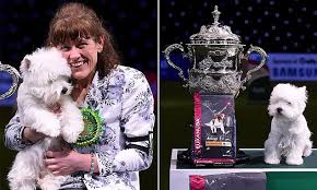 Miss Donaldson said she was 'so proud'The West Highland terrier was one of several small terriers that originated in Scotland. Used for hunting fox and other small game, the West Highland terrier was developed during the 1800s when a solid white dog was desired in order to differentiate the dog from the prey when the shooters took aim. The American Kennel Club recognized the West Highland terrier as a member of the terrier group in 1908.The West Highland White Terrier is a small and compact dog with a sturdy appearance. Its body is longer than tall and its legs are short. The head appears rounded with a short muzzle. Westies have wide set, erect, small ears. Their coat is all-white and is slightly coarse to the touch. The coat should be brushed regularly and requires occasional trimming. Personality: The West Highland White Terrier is a friendly and confident dog breed. They are eager to please and devoted to their human families. Westies get along well with children and make good playmates.